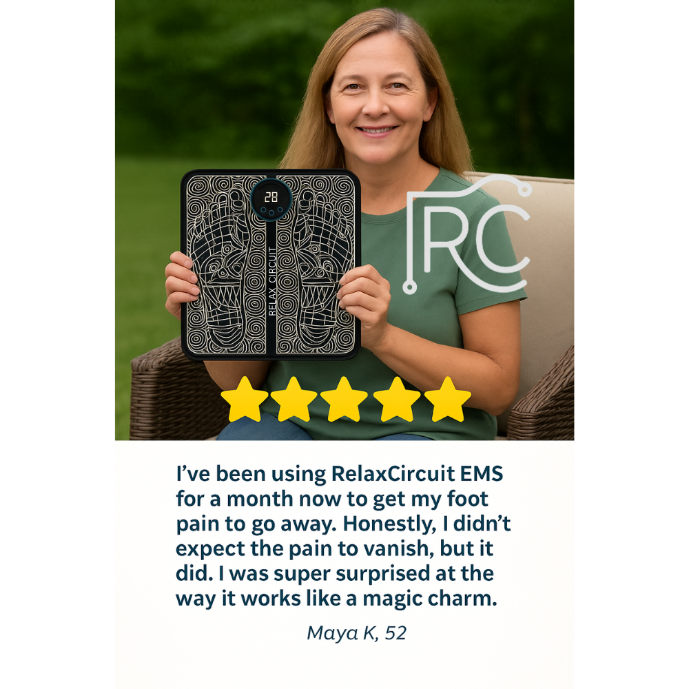 Tired, sore, or heavy legs don’t have to hold you back. The Relax Circuit EMS Foot Massager stimulates nerves, boosts circulation, and eases pain with gentle electrical pulses. Just 10–15 minutes a day can restore comfort and energy—anytime, anywhere.